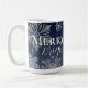 Caneca De Café Feliz azul e flocos de neve brilhantes Natal