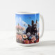 Caneca De Café Feliz Bulldog Francês Azul e Flores