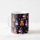 Um padrão de tema do Dia das Bruxas com várias abóboras com rostos talhados felizes entalados nelas. O padrão foi gerado por I. A. e tem um fundo preto. Você pode ter este padrão repetitivo impresso em qualquer produto que seja adequado para impressão completa e que possa ser associado ao Halloween.
