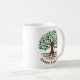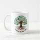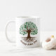 Design Happy Arbor Day. Árvore com folhas verdes, tronco castanho, raízes marrons e, combinando em cor o slogan: Feliz Dia da Árvore