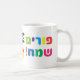 Feliz Festival de Purim Kids Festa Carnaval Decoração Colorida com Letras Hebraicas e Presentes de Purim Máscaras Festivas para Mug de Café. Tradução do texto hebraico: Feliz Purim! Poster de Férias Judaicas, Padrão Decorativo e Texto Coloful. Presentes de purmo, Stars of David, biscoitos tradicionais de Hamantaschen, barulhador de brinquedos gragger, balões, músicos, máscaras sobre fundo de confete festivo. ("Mishloach Manot" - Purim) Carnaval, Mascarada, Festival, Partido Crianças, Israel. Trendy Design para Casa > Cozinha e Jantar > Drinkware > Mugs & Cups Festival de Partida