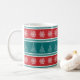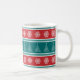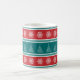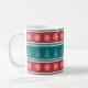 Ilustração feliz de Natal com árvore de Natal e decoração de flocos de neve em fundo vermelho, branco, azul e turquesa listrado