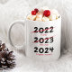 Engraçado caneca de natal novidade com um simples fundo branco que pode ser mudado para qualquer cor, o humorístico ditado "2021, 2022 ainda é uma porcaria, 2023 dedos cruzados".