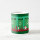 Feliz Natal! No topo da design estão Papais noeis, seu trenó e renas voando pelo céu. No meio da design estão as palavras "Feliz Natal" em branco. No fundo da design estão Papais noeis olhando para você com árvores vermelhas e um boneco de neve. A cor de fundo é verde com pequenos flocos de neve caindo.