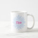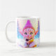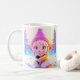 Um elfo bonito de ai, de cor rosa, com aquele lindo e branco copo de café de inverno de neve.