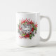 Esta caneca de café festiva ilustra uma coroa de Natal feriada. Esta caneca daria um presente de Natal verdadeiramente maravilhoso para amigos e familiares.