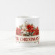 Feliz Pai de Natal Mug. Uma fita colorido creme com o texto: Feliz Pai de Natal com decoração aquosa de Poinsettias brancas e vermelhas, groselhas e folhagem. Opcional para Personalizar o texto. Este é um presente de Natal perfeito com floral de inverno eterno que ele pode usar ano após ano. Dê ao seu pai uma caneca favorita para a temporada de Férias.