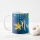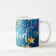 Café Mug - Feliz Navidad em Fundo Azul com Douradas Estrelas - - Veja este design em pratos, guardanapos, portas copos e muito mais na minha loja.