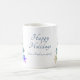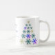 Festivo Snowflake Festa de Natal Feriado Mug. Na moda e caneca de Natal festiva com desejo de Feliz Feriados e sua nota pessoal. Lindas árvores de Natal feitas de grandes e pequenos flocos de neve. Personalize a caneca com seu nome e anotação. O texto está em um script de tendência.