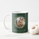 Café de Natal Mug com um visual elegante com a coroa de natal de aquarela com um modelo de foto da família em saga verde pode adicionar fotos da família, pode mudar a cor de fundo, o tipo de fonte e a cor como quiser.
