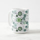 Esta caneca de café cerâmica é mostrada com um bonito design de impressão floral em cores de aqua e verde. Personalize este item ou comprar como está.
