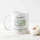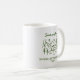 Caneca personalizada de festa de despedida de solteira simples e moderna em verde e branco com uma tenda na floresta é perfeita como cenário para fotos de despedida de solteira. Celebre seu chá de noiva com estilo com o tema perfeito para um fim de semana de camping, o tema perfeito para a noiva nostálgica dos anos 70 e suas damas de honra.