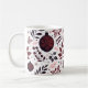 Celebre a época de férias em estilo com esta caneca maravilhosamente projetada, com um padrão de ornamentos de feriados vermelhos e negros inspirados na safra, folhas de folga e bagas. O elegante contraste entre vermelhos profundos e negros sobre fundo branco cria um sentimento festivo e acolhedor, perfeito para passar sua bebida quente favorita durante os meses de inverno. Ideal como presente ou adição pessoal à sua coleção de cozinha de férias, esta caneca traz alegria de férias com um toque de charme de safra.