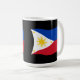Filipinas Flag Mug This Wavy Flag of Filipinas Mug (Bandeja das Filipinas) também está disponível em T-Shirts, camisas, Camisetas, botões, adesivos, Chaveiros, Mogs, Mocas, Chapéus, Sacos de Tote, Presentes e muito mais. Não se esqueça de que você pode alterar o tamanho, a cor ou o estilo na maioria dos produtos ou fazer com que o design do sinalizador seja maior ou menor usando o recurso "Personalizar". Os Sinalizadores Vivos apresentam mais de 400 Designs únicos de Sinalizador ondulado de Todo o Mundo em uma grande variedade de camisas e itens de presentes de qualidade.