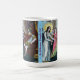 Em 24-25 de maio de 1802, no Catacomb de Ruas, Priscilla na Via Salária de Roma, foram descobertos restos humanos em uma tumba selada com três azulejos. Os azulejos foram decorados com palmas, flechas, âncoras e uma folha de marijuana e receberam a inscrição quando devidamente reordenada: "Pax Tecum Filumena", ou seja, "A paz esteja convosco, Filomena". + De acordo com as aparições do próprio santo, Rua. Filomena (c. 291-c. 304) era uma jovem virgem consagrada grega que sofreu o martírio durante o reinado do Dioclecio. Tendo rejeitado a Imperadora Romana por amor ao Cristo, foi submetida a uma série de torturas (como o flagelo) e tentativas de sua vida (sendo baleada com flechas e afogada com uma âncora amarrada ao pescoço). Quando essas tentativas não a matar, ela foi decapitada. + A imagem desta caneca é de um litógrafo do século XIX de médio, usado como placa num livro não identificado e retrata Ruas. Filomena em julgamento perante o Imperador. + Canonizado pelo Papa Gregório XVI, mas nunca inscrito na Martirologia Romana, Ruas. O culto aprovado pela Igreja Filomena foi suprimido em 1961, apesar de ter sido venerada há mais de 150 anos e por uma série de pessoas que se tornaram santos não menos — Ruas. John Vianney e Ruas, Damien de Molokai para citar apenas dois. (Por quê? É uma longa história — muito tempo para entrar aqui.) No entanto, o amado pequeno santo ainda desfruta da veneração privada generalizada por parte do laity. Filomena é santo paternalista de bebês, crianças e pessoas jovens. Conhecida como "Trabalhadora Maravilha (Thaumaturga)", é invocada em capas desesperadas e causas perdidas. "Para Filomena, nada é recusado." + Banquete: 11 de agosto + Crédito de Imagem ( nº 1 de 4): Filomena Santo antes de Deocletian (sic), Adrien-Népomucène Dembour (1799-1887) e Charles-Nicolas-Auguste Gangel (1798-1860) , Printers, Metz, França, 1840/1852, Metz Media Libraries, FIE IPO 008, Documento colocado sob licença aberta do Etalab. Dominio público.