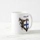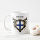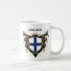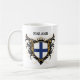 Design legal da crista com cores finlandesas da bandeira nacional. Substitua o texto "Finlandia" com seu próprio slogan para criar um presente finlandês personalizado original do orgulho. Ideias personalizadas do presente: #1 pai finlandês, mamã, vovô, avó, tio, tia, esposa, marido, [o outro membro da família]; Orgulhoso ser finlandês, rochas de Finlandia.