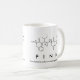 Finn soletrado em aminoácidos como F I N (Fenilalanina Isoleucina Asparagina) numa caneca para o cientista em si.