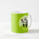 Nunca deixe de ser curioso sobre o mundo. Uma caneca motivacional com um curioso robô verde vendo uma borboleta colorida pela primeira vez, colocada em uma colina com margaridas. Use "Personalizar este modelo" para alterar o texto "Fique curioso!" se desejar; as alterações de texto são refletidas em ambos os lados. Pode ser uma imagem sobre amizade, descoberta ou aprendizagem. Uma design que combina ficção científica e natureza.