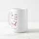 Adicione um nome para personalizar minha caneca de café design cristã original para um belo presente para o amigo crente Bíblia. Personalize a caneca na moda com um nome no verso. Personalize esta caneca de café com script de Bíblia com seu próprio texto, se desejar. "Fique quieto e saiba que sou Deus", é um verso Bíblia cristão de Salmos 46:10. A tipografia da moda está na cor de vinho roxo. Reze e medite sobre a presença de Deus e sua calma enquanto bebe seu café na hora de silêncio matinal. É um presente de fé cristã excelente para a mãe cristã, irmã espiritual ou amiga estudante de bíblias da igreja.