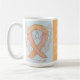 O Cancer Uterine usa uma fita de reconhecimento de fita de pêssego para mostrar suporte para sua consciência. Esta caneca personalizada apresenta uma fita de reconhecimento de fita de pêssego, pinturas de arte de anjo guardião com a mensagem "I Hope and Support Uterine Cancer Awarness!" O personalizado reconhecimento de fita de pêssego guardião anjo-fita, cartaz, pintura de café copos ou canecas, pode ser personalizado com mensagens personalizadas para fazer canecas de excelente para angariadores de fundos de conscientização, presentes de copos de reconhecimento ou outros eventos especiais ou causar ocasiões de suporte. Faça suas próprias palavras personalizadas para uma mensagem pessoal de esperança e apoio para compartilhar!
