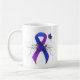 Fita azul e púrpura com borboleta, círculos e comutação. A fita azul e púrpura representa Artrite Reumatoide e Acidente Pediátrico. O Mês de Sensibilização por Curso Pediátrico e a Artrite | Mês de Consciência da Artrite Reumatoide.