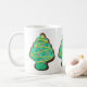 Fotografia de um biscoito caseiro de pão de pata decorado repetida em torno da caneca.