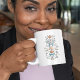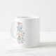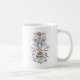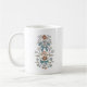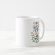 Boho e caneca rústica com ilustração feita à mão de arcos e flores em azul.