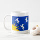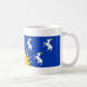 Mug with design with design with a flag of historic county of Merioneth, in Wales, Great Britain; blue azure flag with three white goats and yellow sun