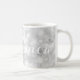 Uma caneca de café de Natal personalizada, com "Deixe-a nevar" em um roteiro de pincel moderno/ caligrafia manual em um fundo de neve de cinza leve.