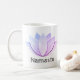 Esta caneca da flor de Namaste Lotus é original e faz um presente impressionante para qualquer um que ama flores e arte abstracta. Você pode personalizar este produto adicionando imagens, textos e/ou resizing os trabalhos artísticos originais! Trabalhos de arte por Jacquelyn Jaie Fourgerel.