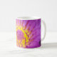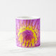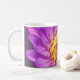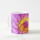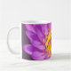 Caneca de café com uma foto macro de uma flor de Lotus roxa.
