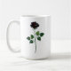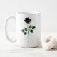 Rosa preta simbólica e artisticamente desenhada com caules e folhas verdes sobre um fundo branco. Rosa preta.