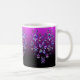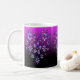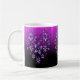 Lindas flores pequenas em diferentes tamanhos, formas e cores que variam em tons de azul e roxo em um fundo de gradiente roxo e preto.