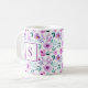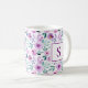 Flores Roxas Bonitas Monogramas Café Mug. Esta moderna design de padrão feminino apresenta rosas roxas de cor d'água bonitos. Personalize com seu próprio monograma personalizado inicial.