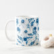 Esta caneca de café é mostrada num adorável impressão floral azul. Personalize este item ou comprar como está. Imagem do stock vecteezy.com