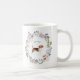 Esta linda caneca apresenta uma coroa floral de cor d'água, com flores e folhas bonito em rosa, pêssego, azul empoeirado, roxo e verde. Uma ilustração aquosa de um cachorro beagle fofo senta-se em dentro, com um ponto para adicionar seu próprio nome ou do seu animal de estimação! O presente perfeito para a orgulhosa mãe do cão.