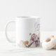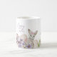 An Easter themed mug with a border of floral Easter eggs, an Easter bunny and butterfly
