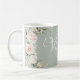 Bonito cor d'água floral elegante script personalizado mug. O fundo verde sábio torna isso tão bonito e delicado.