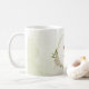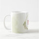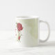 Linda caneca de café com flores vermelhas e brancas e folhas verdes