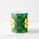 Mug com 2 grandes flores amarelas em prenda verde. Adicione seu próprio texto, se desejar.