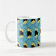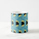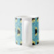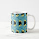 Pequenas flores azuis em preto com uma caneca amarela bonito. padrões repetidos de flores criam um padrão de abstrato ao redor da caneca. Pode ser personalizado com um nome usando as ferramentas personalizadas do Zazzle para torná-lo seu próprio ou criar um presente especial. Design por Robin Lynn Murray/RobinMurrayDesign.
