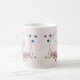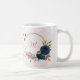 Linda caneca de café romântica com flores rosa azuis marinho e algumas folhas bonitas .