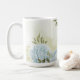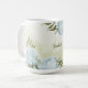 Caneca De Café flores azuis românticas & folhas verdes botânicas
