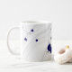 Linda caneca de café com flores azul royal e folhas cinza prateado em fundo de mármore