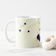 Belas flores azul royal & folhas douradas em caneca de café com fundo de mármore