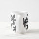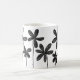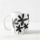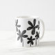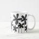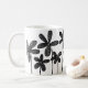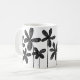 Um design de caneca original com um arranjo atraente de canetas pretas e brancas desenhadas à mão e flores do estilo tinta.