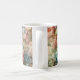 Bonito aquarela, caneca de café floral com flores azuis, rosa e brancas.
