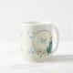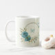 Caneca De Café flores brancas azuis folhagem