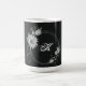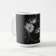 Caneca De Café flores brancas românticas folhagens preto