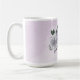 Caneca de café botânica linda com flores roxas românticas de lavanda e brancas com folhas verdes